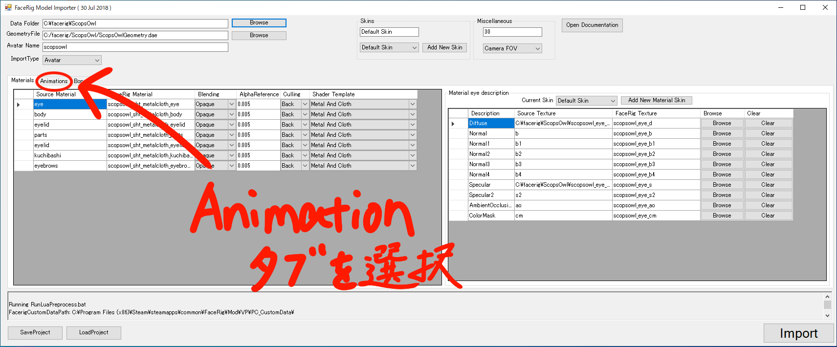 お手数ですが再度ImportWizard.exe(デフォルトファイルパスC:\Program Files (x86)\Steam\steamapps\common\FaceRig\Bin\Tools\ImportWizardNew\ImportWizard.exe)を開き、Browseから本データを読み込んだ後、下で示す画像の通りに読み込まれているか確認してください。